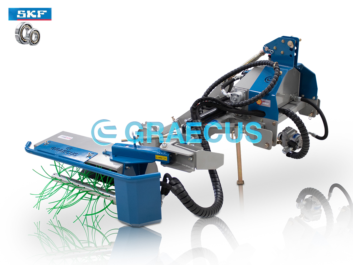 • Automatikus visszavezető cső, hidraulikusan összecsukható, alkalmas szőlőültetvényekhez, gyümölcsösökhöz és sűrű faültetvényekhez.