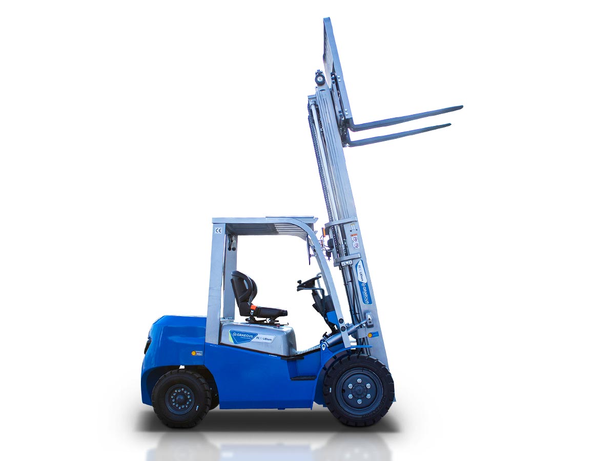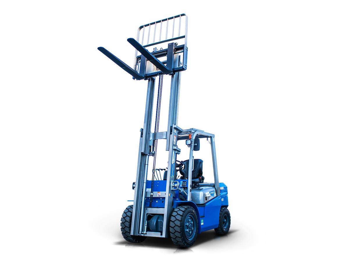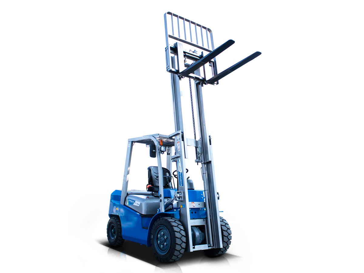 - Standard felszerelés konténerekben való használatra, kétfokozatú, 3000 mm-es emelőoszloppal és oldalirányú