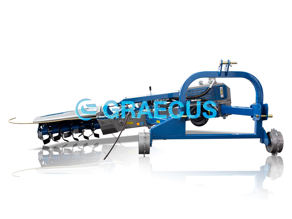- A fa- és szőlőművelési kapa forgó tengellyel és mechanikus meghajtással rendelkezik .