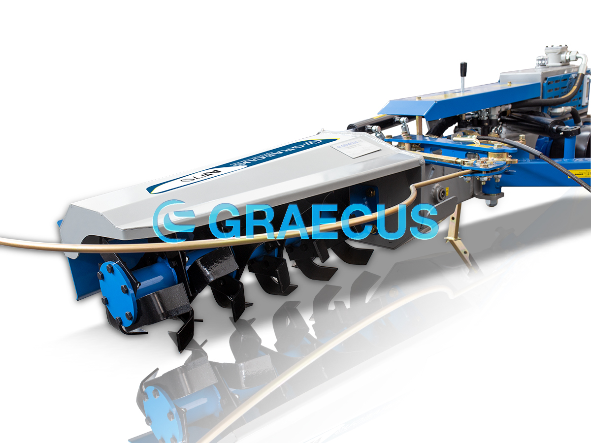 - A fej dőlésszöge hidraulikusan állítható egy karral. Egy másik extra távirányítós kar a kezelőhelyen aktiválja az eltolást az akadályok elkerülése érdekében.