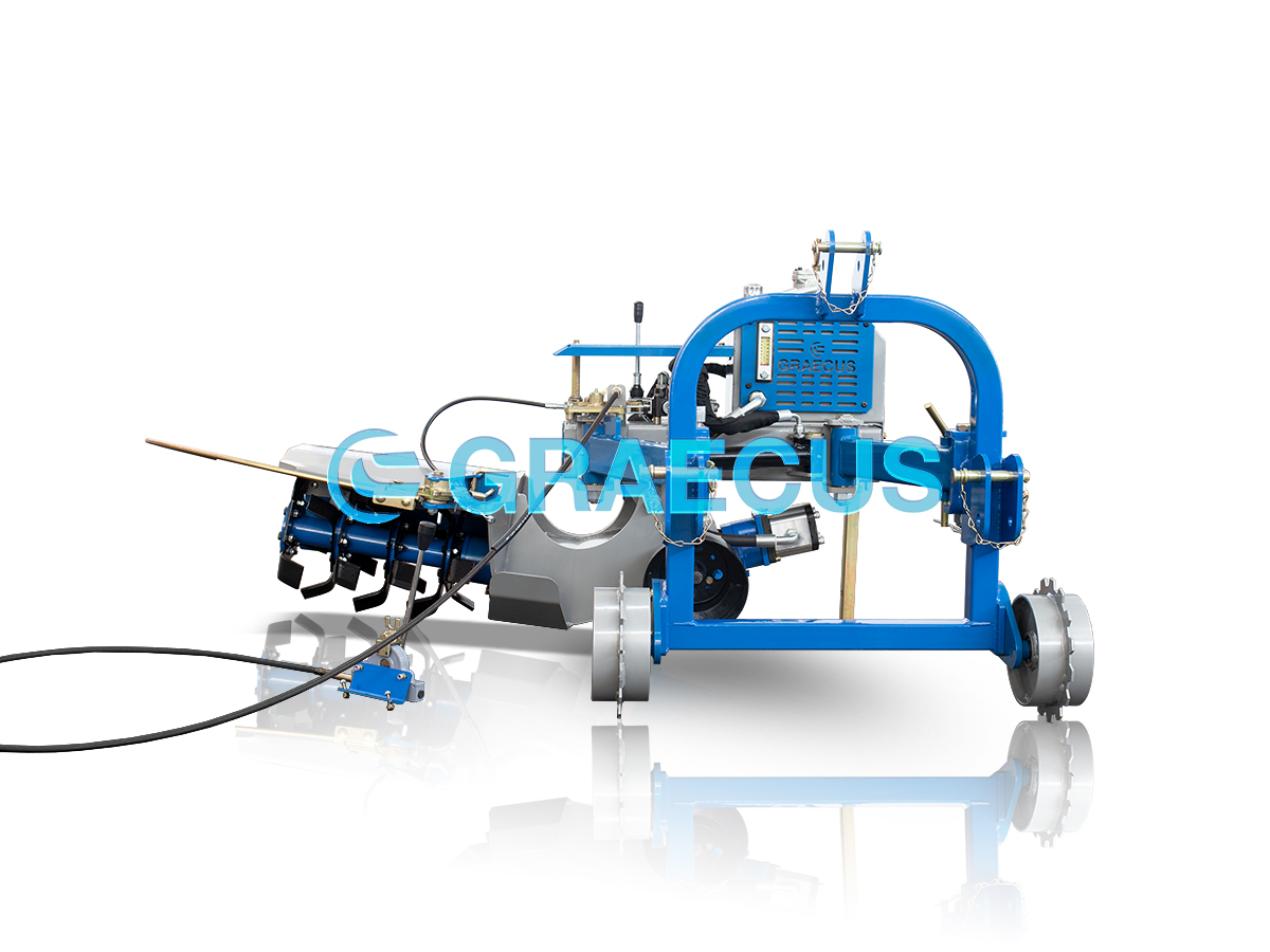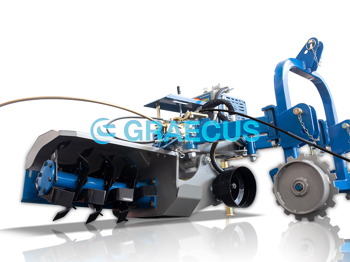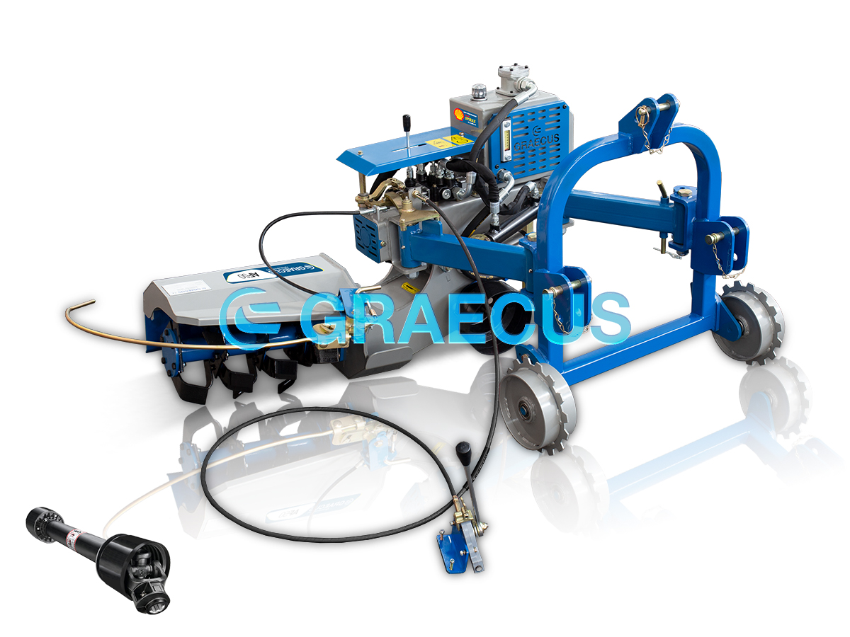 - A Graecus AF50 fa- és szőlőművelési talajművelő forgó tengellyel és mechanikus erőátvitellel rendelkezik .