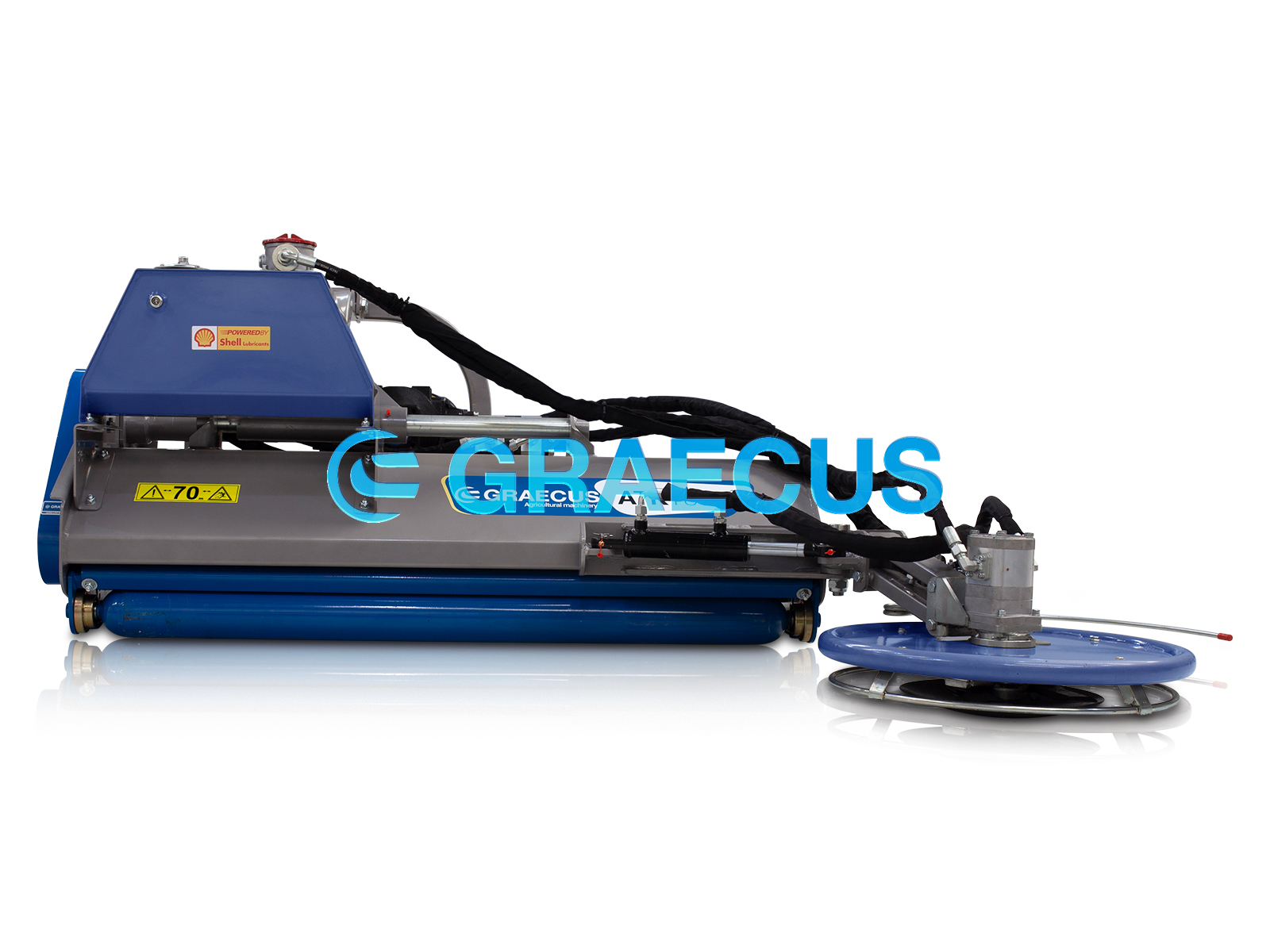 - Oldalra szerelt, hidraulikusan állítható kaszatárcsa antennával.