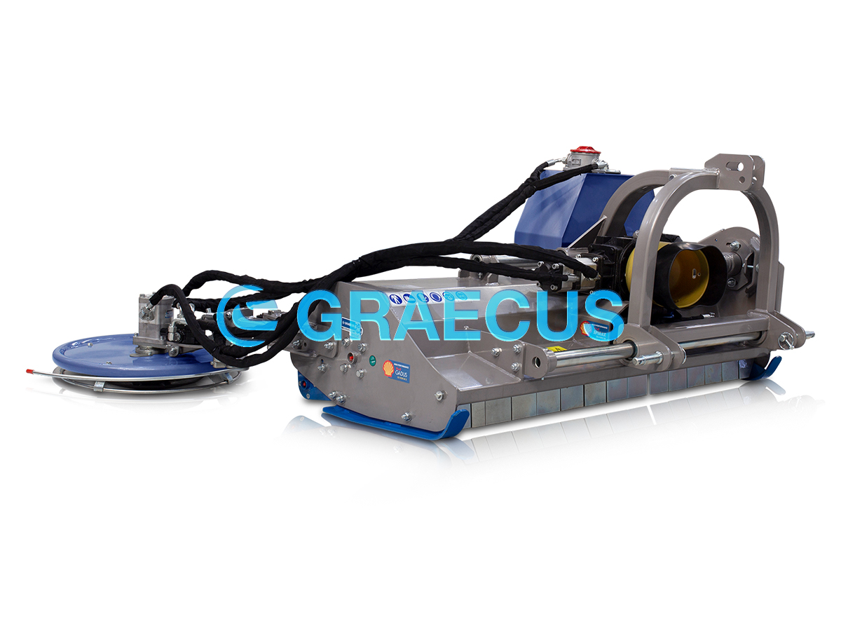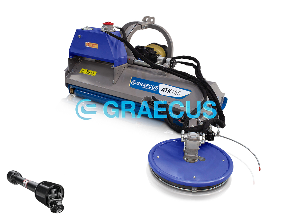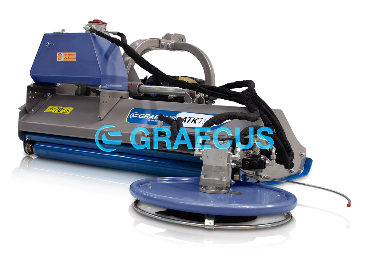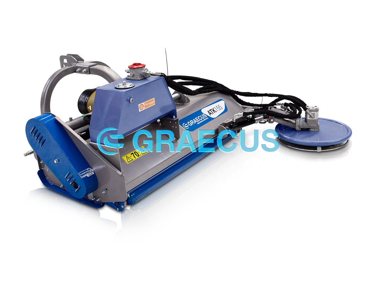 - Az ATK egy hidraulikusan mozgatható aprítógép , amely egy 60 cm-es önálló oldalsó kerekes fűnyíróval rendelkezik . Az oldaltárcsa legnagyobb előnye, hogy nem igényel hidraulikus csatlakozást a traktorhoz. A gép jobb oldalán található oldalsó kereket a felső részéhez csatlakoztatott hidraulikus motor hajtja, és 2 késsel vágja a füvet (őrült). Az önálló hidraulikus szivattyú a hajtóműhöz csatlakozik, az olajellátást pedig az aprítógép házán található tartályból kapja. A aprítógépet egy kettős működésű hidraulikus henger mozgatja .
