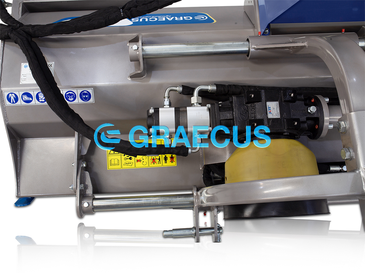 - Oldalra szerelt, hidraulikusan állítható kaszatárcsa antennával.