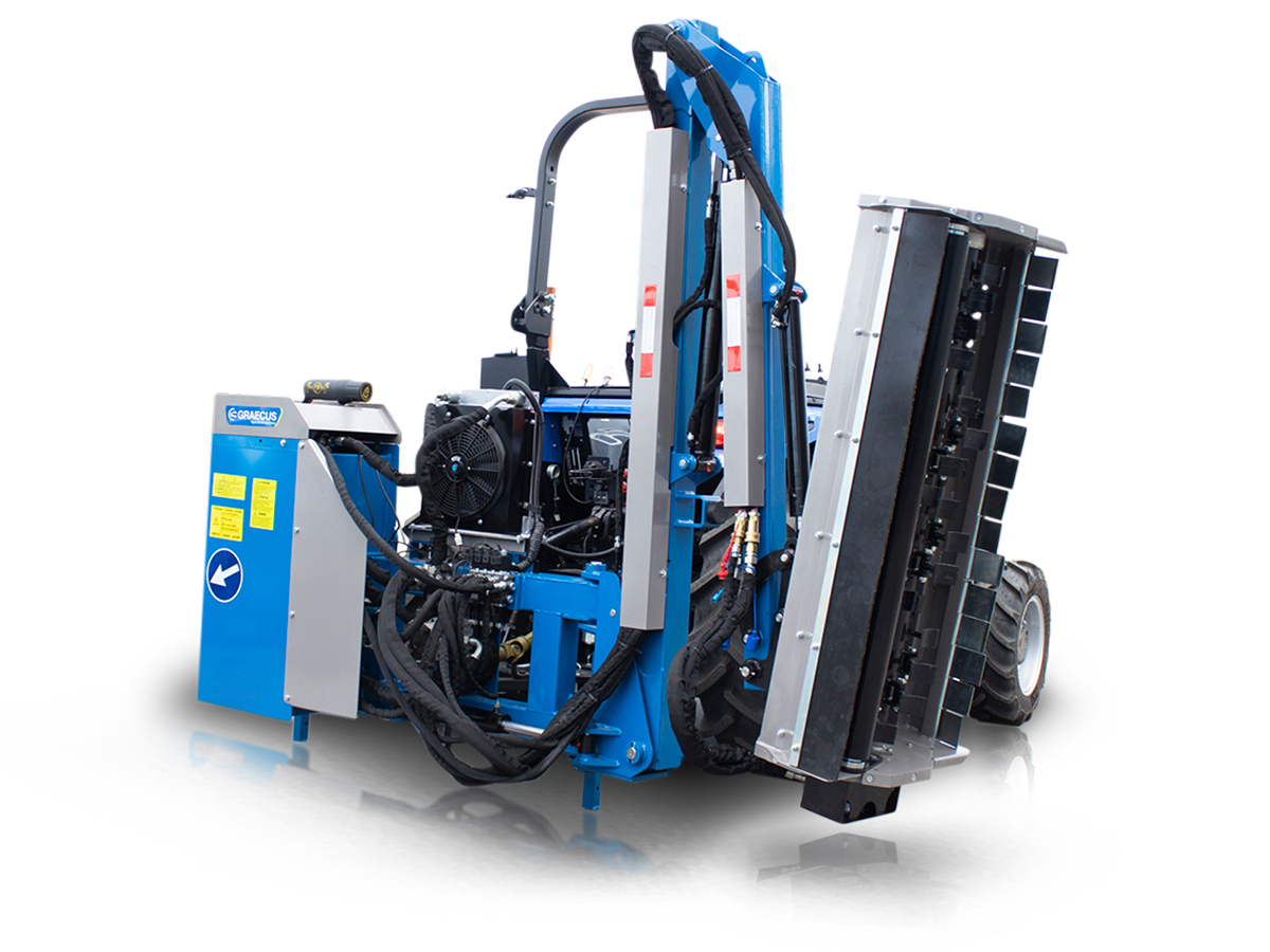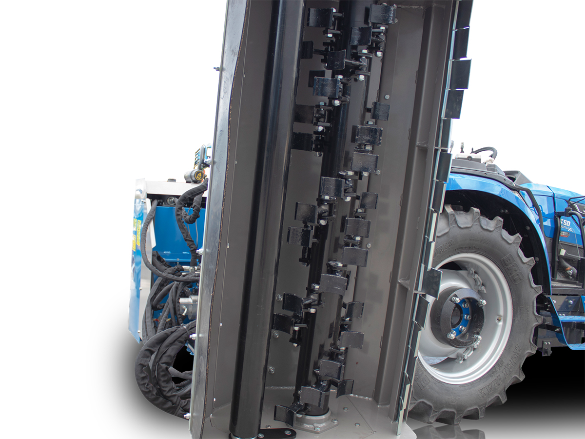 - Nagy teherbírású, hidraulikusan működtethető, traktor hátuljára szerelhető aprítógép. Alkalmas lejtős terepen, gyepen, útszéleken és kertekben végzett munkákhoz.