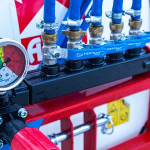 - 5 állású vezérlés, 150 l/perc áramlási sebesség és 50 BAR, nyomásszabályozással és főkapcsolóval.
